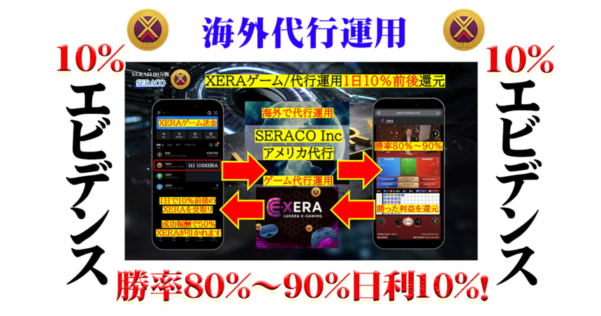 翌日に、SERACOチームがXERA CARD対戦ゲームでわずか1時間で勝った場合利益10%です。
